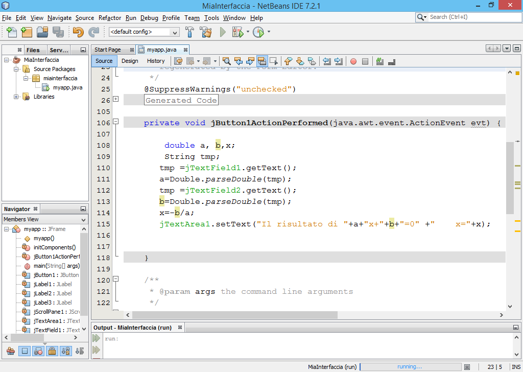 L’esercizio serve per imparare ad utilizzare gli oggetti swing e i metodi associati. Il codice è nell’evento click del bottone